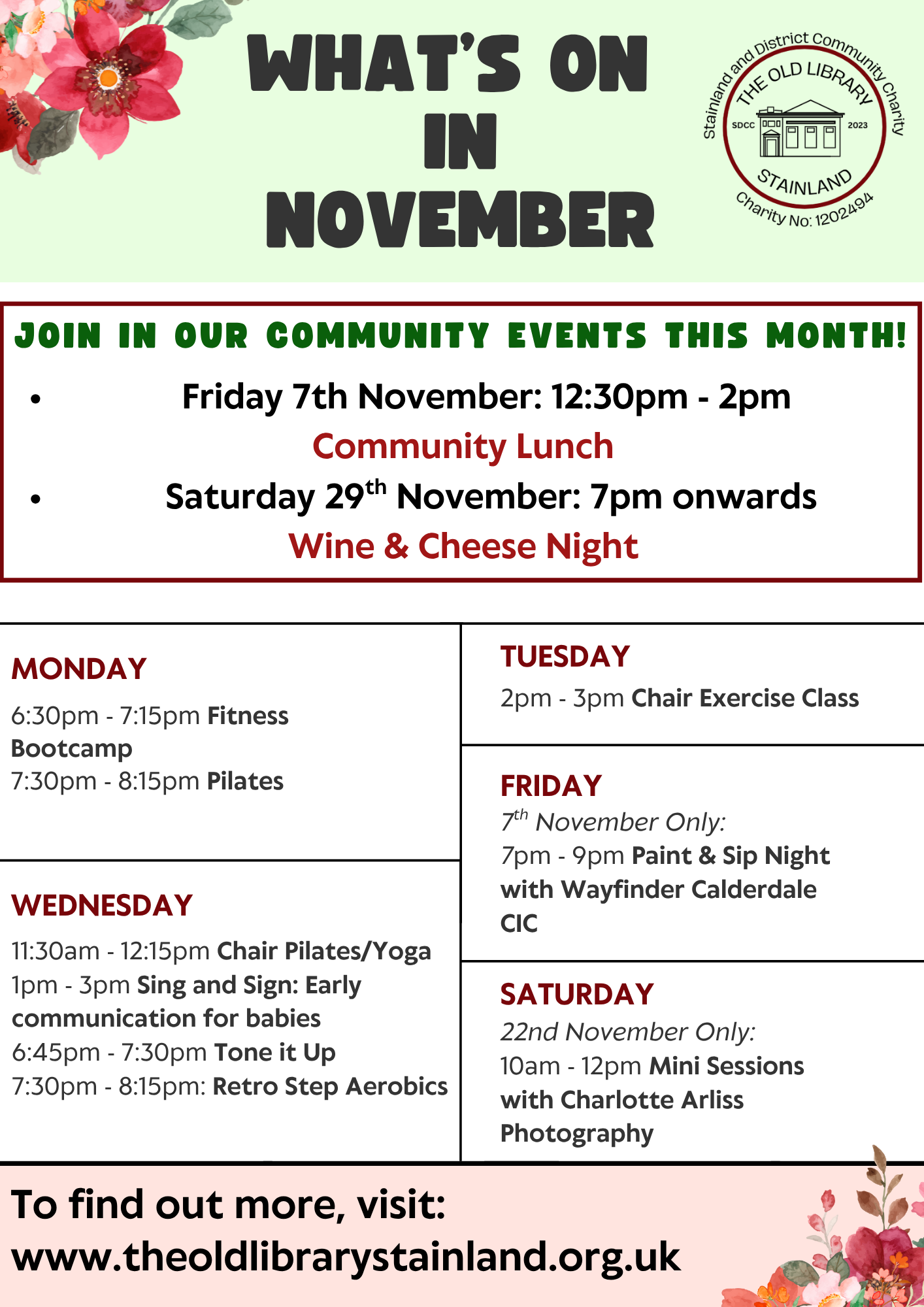 Details on how to book will be found when you click into the event on our calendar system. For any questions, you can contact us.